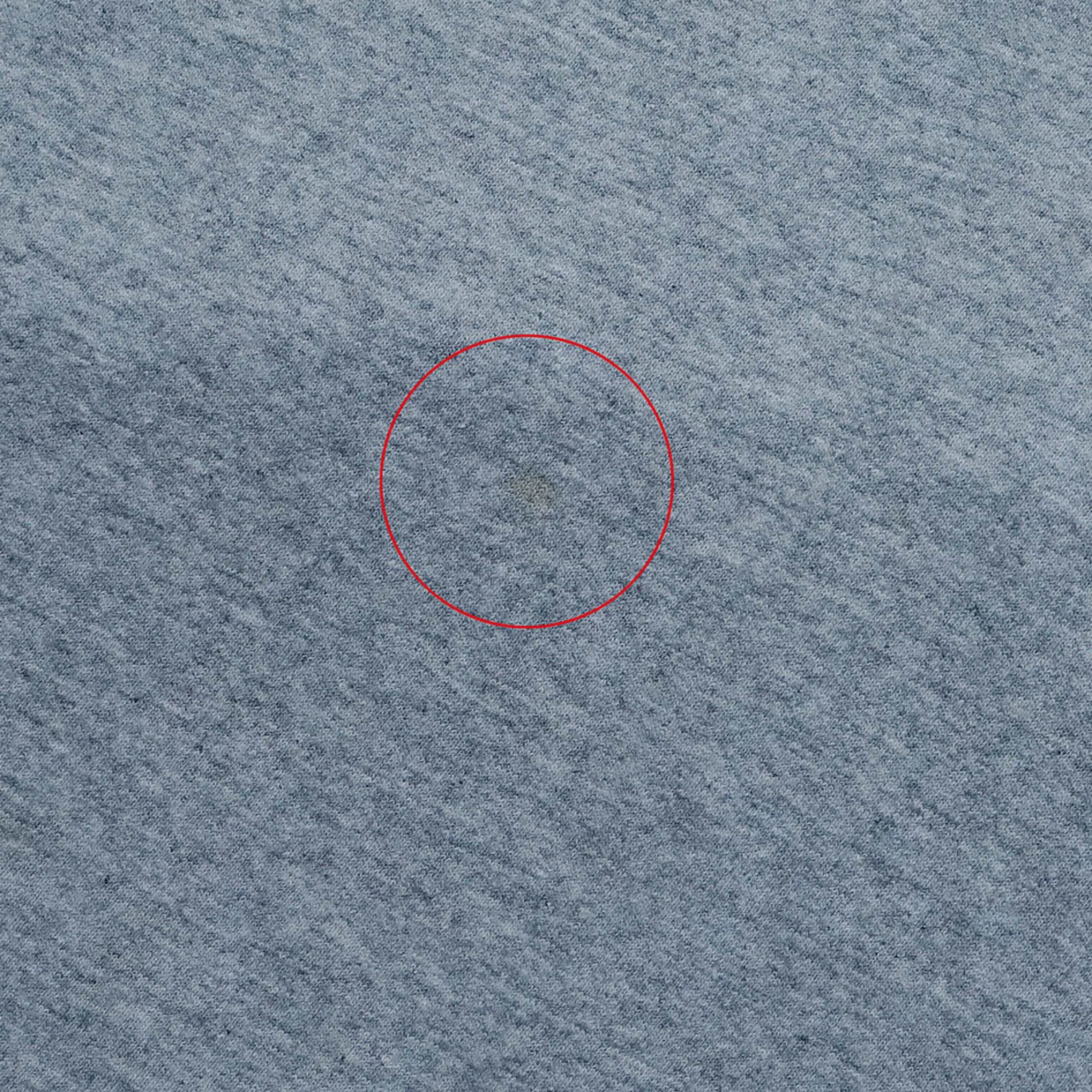 全体的に使用感があり、右胸に小穴、襟ぐり/ポケットの右側/裾/右腹部あたりに黄ばみのような薄いシミがあります。