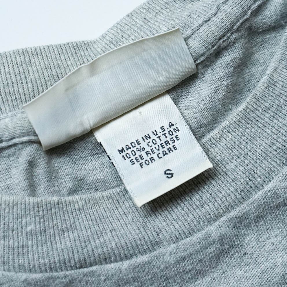 使用感があり、首まわりとプリントの下あたりに薄いシミがあります。