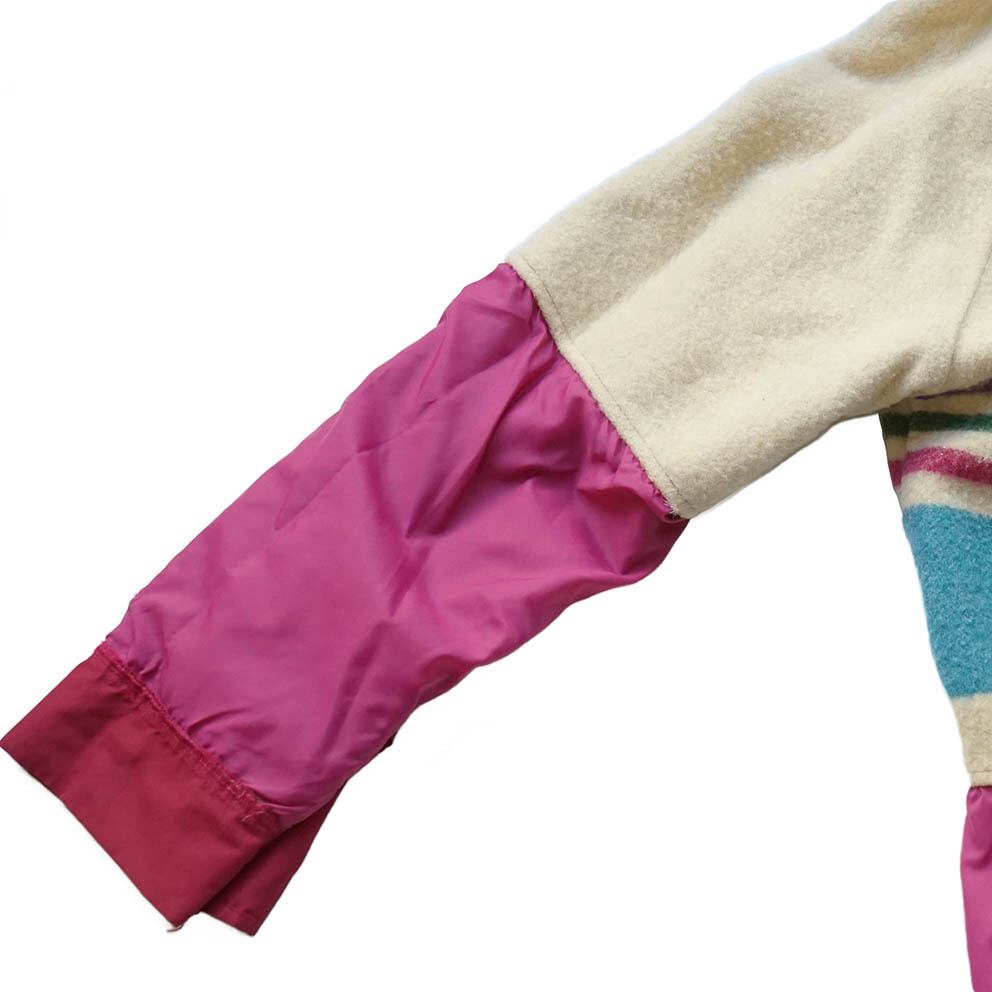 ワインレッドのような色味のシェルとボーダー柄のウール素材のライナー。
